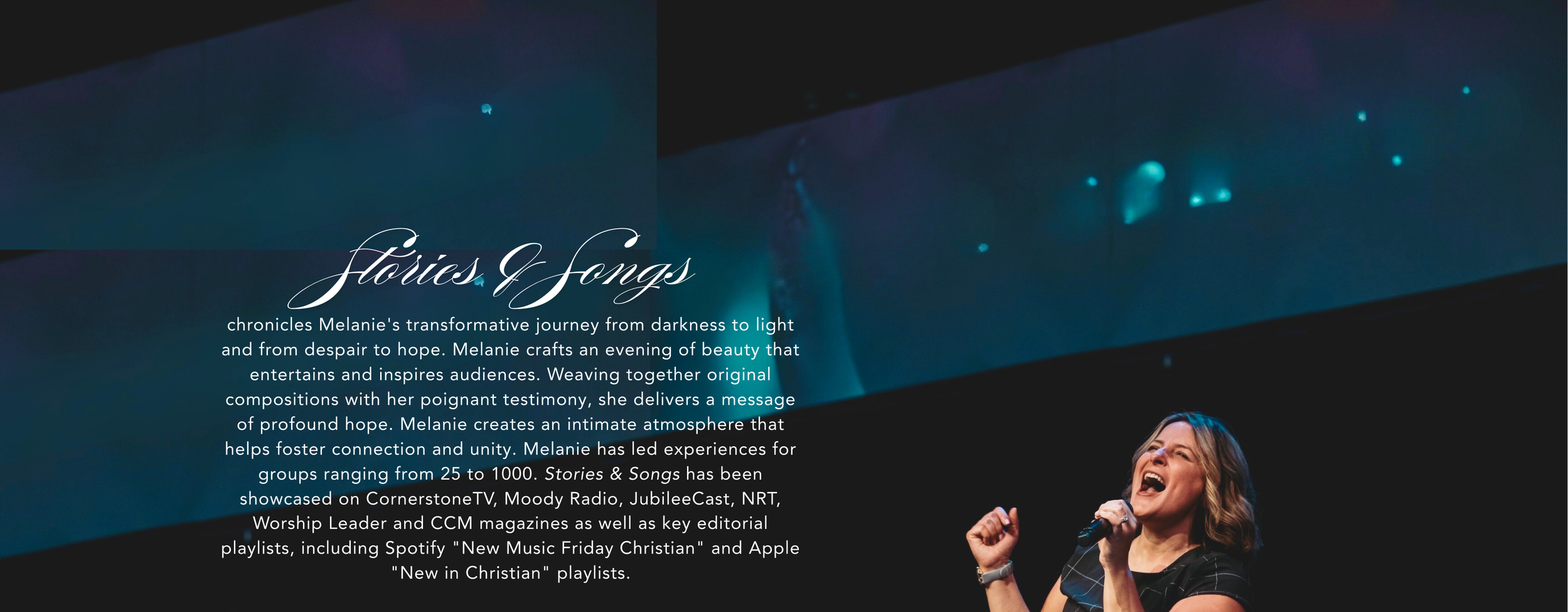 Danielle Strickland, Co-Founder Infinitum, Amplify Peace, and Brave Global“Melanie is an annointed speaker whose testimony will change your life. Her songs speak truth and her ability to connect with her audience is remarkable. Lives change when they witness the work God has done in her life.”